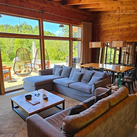 Diese Villa in Futaleufú verfügt über einen Patio und einen Balkon sowie bietet einen Blick auf den Garten. Der Innenraum ist mit einem Schreibtisch ausgestattet und verfügt über einen Kamin. Zur Ausstattung des Badezimmers gehören auch eine getrennte Toilette und Dusche-Bad-Kombination. Ein Haartrockner, Toilettenartikel und Handtücher sorgen ebenfalls für ein komfortables Erlebnis.